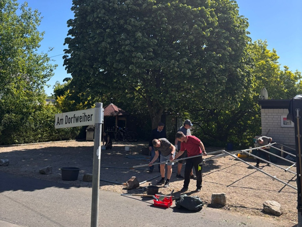 Pflege des Dorfplatzes und Aufbau des Festzelts im Mai 2025